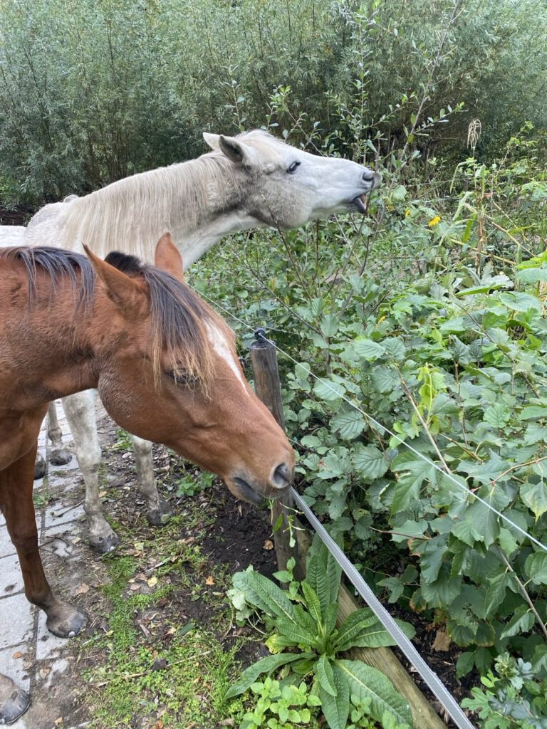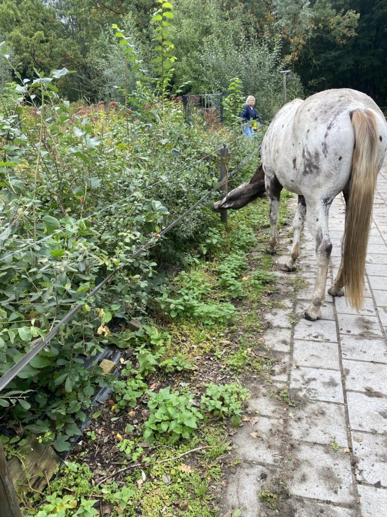 Wanneer er goed voor de paarden gezorgd wordt, moet er ook goed voor de natuur gezorgd worden. In een goed functionerend ecosysteem is alles in samenhang met elkaar even belangrijk. Begin 2025 is er daarom een begin gemaakt met de aanleg van een voederhaag. De haag is vooral ingeplant met inheemse planten en struiken die aanvullend kunnen zijn op het menu van de paarden. Het is natuurlijk ook om de biodiversiteit op de plek te verrijken. Via de organisatie Meer Bomen Nu hebben wij verschillende kansarme zaailingen ontvangen en hebben die op een kansrijke plek geplant om de haag te vormen. Aanvullend is er nog plantgoed van Buitenkweek. Een overzicht van de toegepaste soorten bevindt zich onderaan deze pagina, na de illustratieve poster over voederhagen.